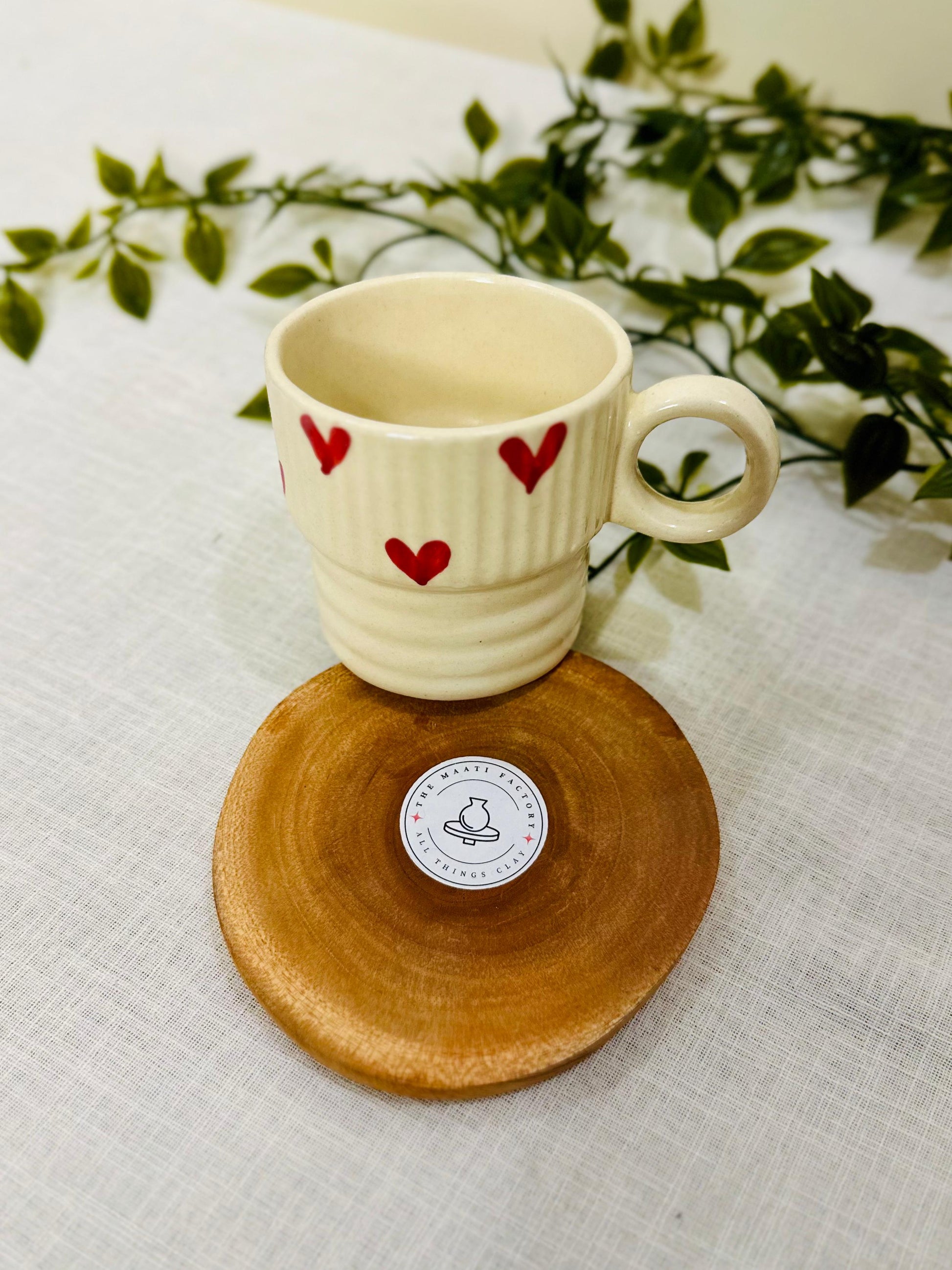 Hand-Painted Hearts: Adorned with a sweet pattern of bold red hearts, each mug is unique, adding a playful and loving accent to your beverage.