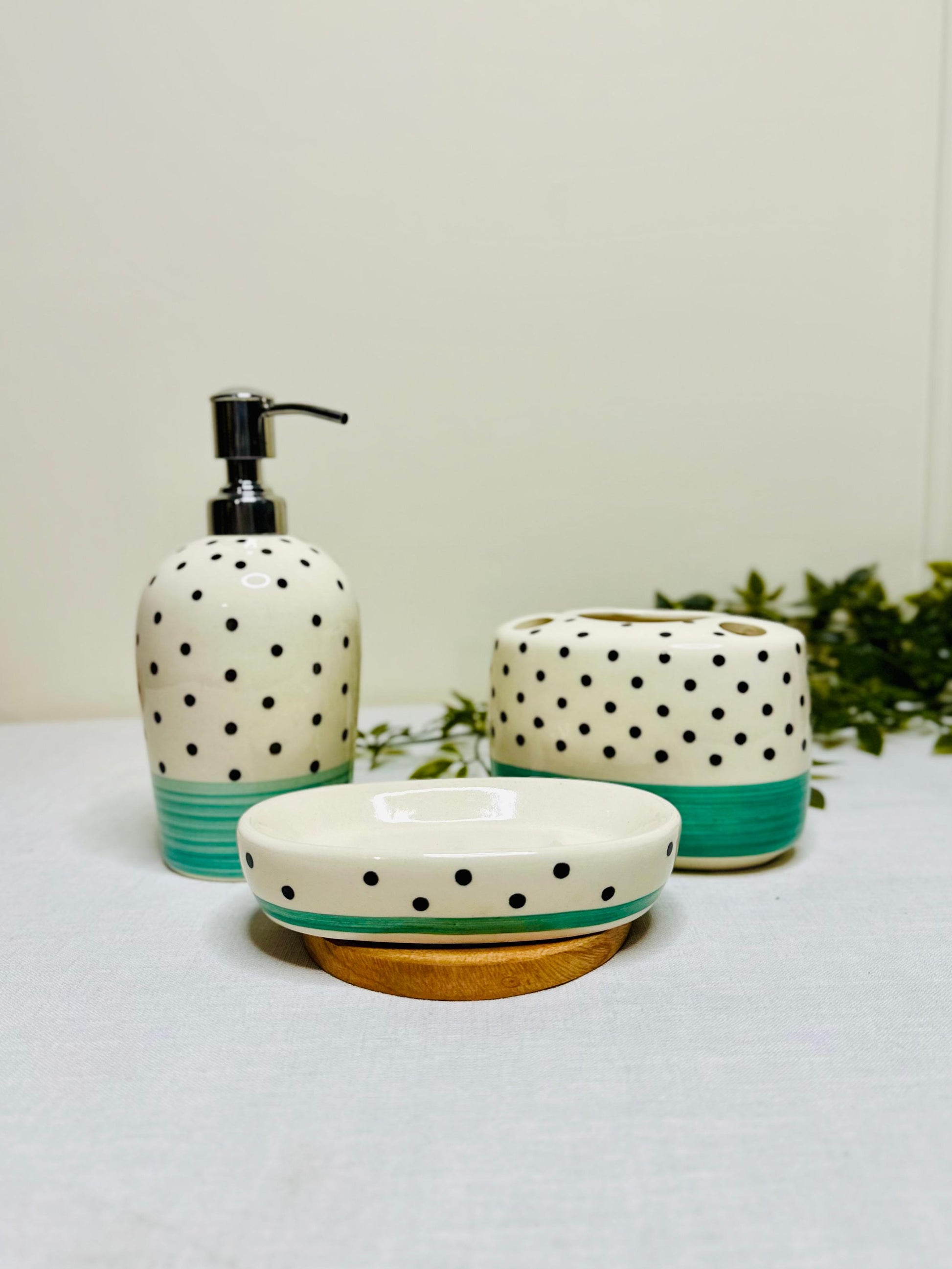 Retro Polka Dot & Teal 3-Piece Ceramic Bathroom Set