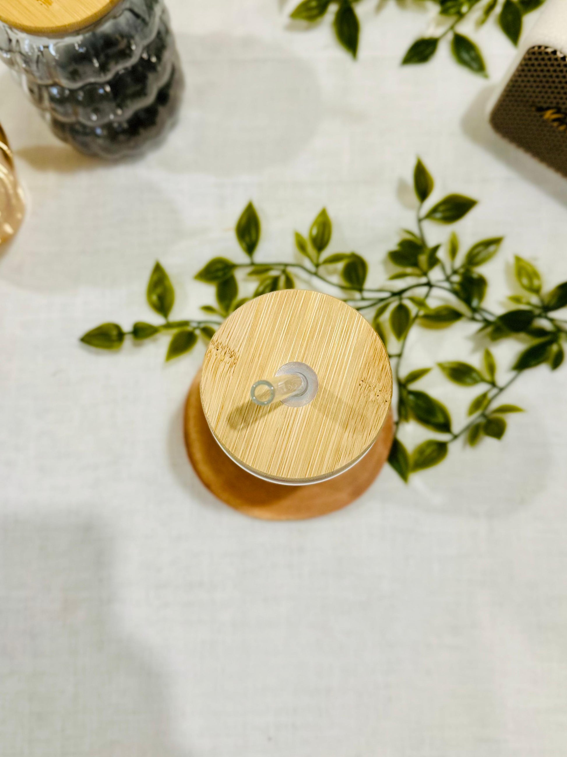 Trendy Glass Drinking Can with Bamboo Lid & Straw